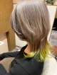 ハイトーンベージュ×ローライト×毛先のライムグリーンが可愛いカラー(*’∀’*)全体ブリーチ(このお客様は3回ブリーチ済み)の後にローライトと毛先にポイントでカラーをのせてます☆オラプレックスを入れてケアしながら施術してます(^^)!
