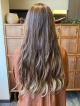 毛先のブリーチは前回のものなのですが、全体的にブリーチでハイライトをたくさん入れて、そのあとイルミナカラーのサファリのせました?