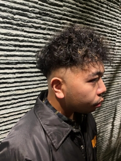 がっつりスキンフェードにお客様のクセも活かしてパーマをかけましてスペインカールっぽく仕上げさせていただきました!