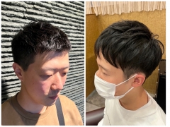 ちょっと長めがお好きな方には、邪魔になりやすいもみあげのところをスッキリ刈った、2ブロックのスタイルもおすすめです(*’∀’*)(写真右)