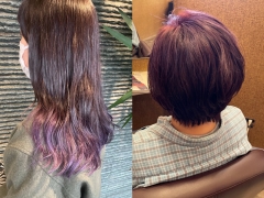 お嬢様はブリーチでグラデーションを作ったベースに鮮やかなパープルを!(写真左)