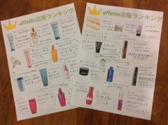 現在アフェットの入り口付近にてアフェット商品ランキング!をディスプレイしているのですが、その詳細についてをお席に置かせて頂いております!