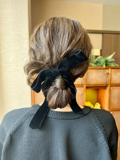 ベロアのヘアアクセリーを使ったシンプルなヘアセットです✨