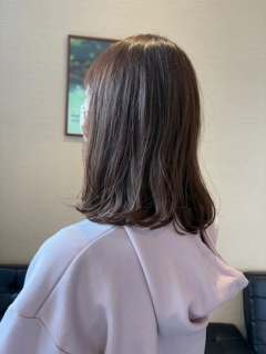 ヘアカラーは事前にナチュラルなオリーブベージュで赤味を抑えた柔らかなお色に。