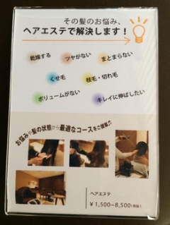 さて、前回予告していたアフェットヘアエステメニューもう体験されたでしょうか?