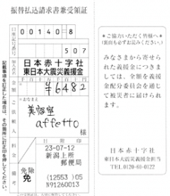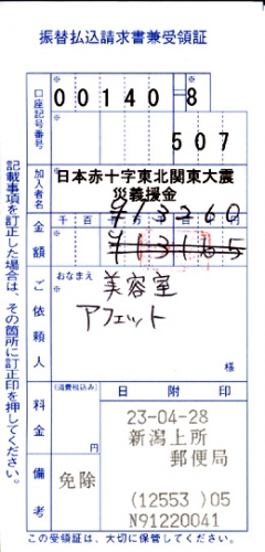 アフェットでお預かりした東日本大震災の義援金を日本赤十字社に振込みました。